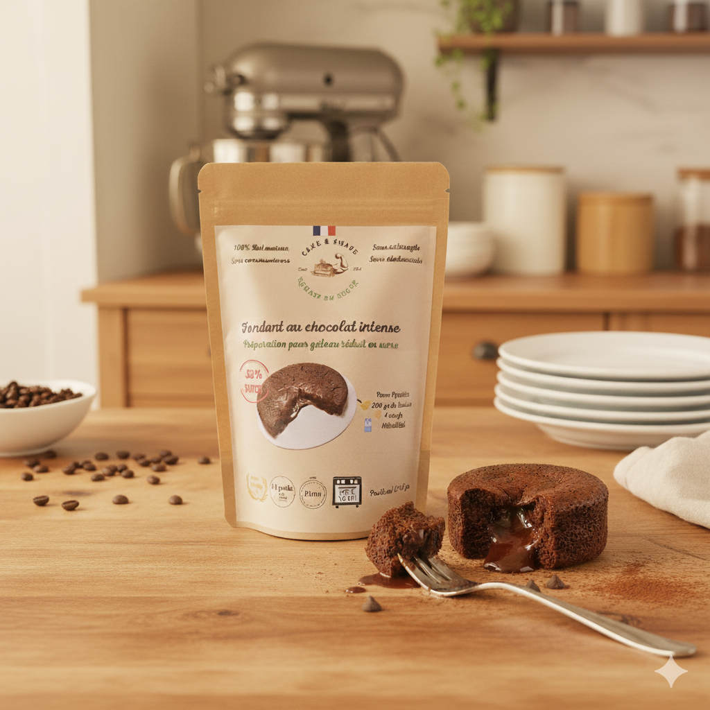 Lot de 3 Paquets de préparations de Fondant au chocolat noir réduites en sucre